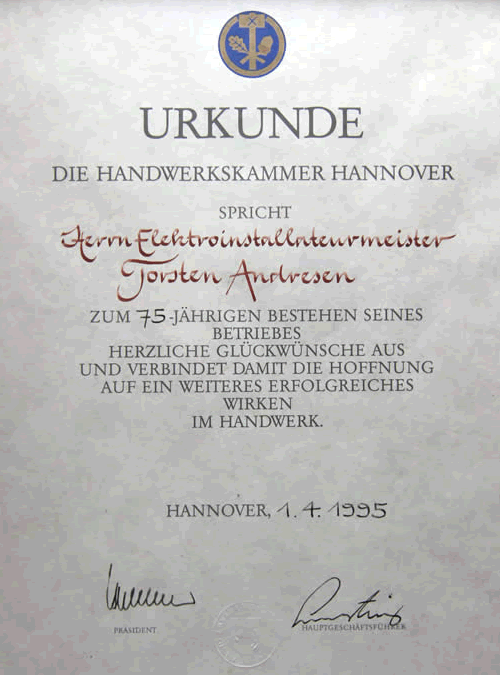 Seit 1920 werden in unserem Haus kontinuierlich Lehrlinge ausgebildet. Einige davon sind mittlerweile Elektroinstallateurmeister oder Ingenieure.