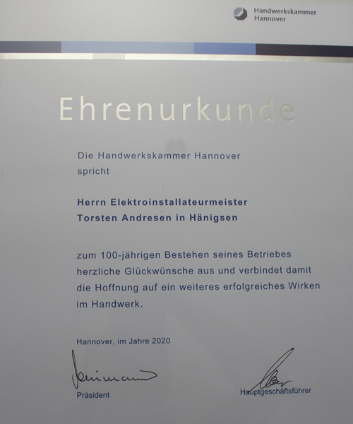 In Hänigsen ist Albert Andresen von Anfang an dabei.Fasziniert von dieser neuen Errungenschaft des Industriezeitalters gründet er ein Ladengeschäft für Elektrobedarf mit einer angeschlossenen Werkstatt.